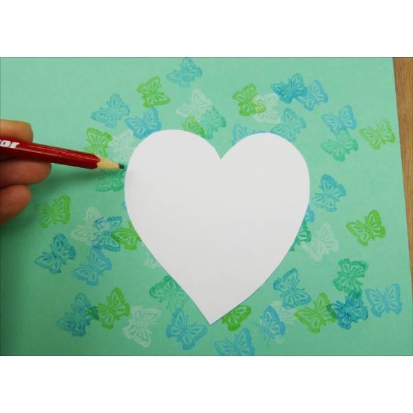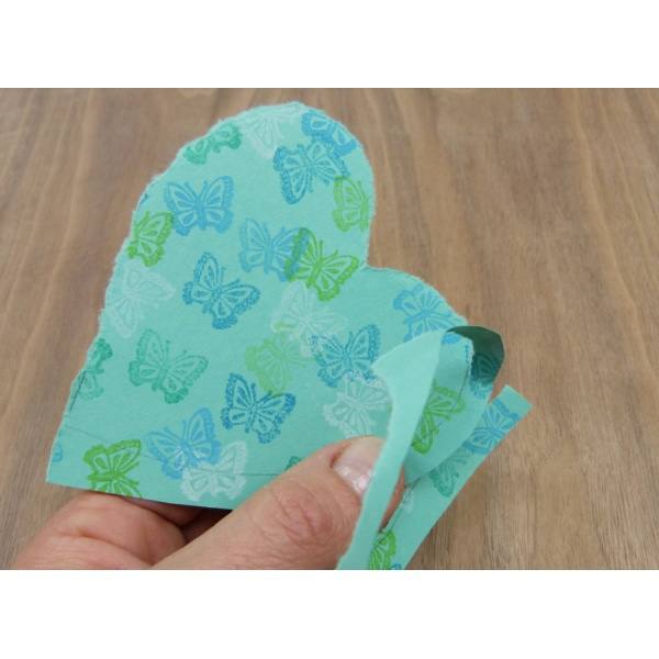 Dann den Rand mit den Fingern entlang der Linie in Herzform reißen. Durch das Reißen entsteht eine schöne Optik.